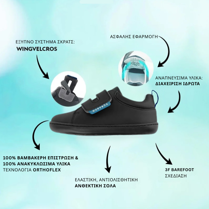 Ο σχεδιασμός Barefoot μιμείται την εμπειρία του περπατήματος χωρίς παπούτσια, προσφέροντας στο παιδί ελευθερία κινήσεων και συμβάλλοντας στην υγιή ανάπτυξη του πέλματος και των δαχτύλων. Κάθε βήμα γίνεται πιο φυσικό και πιο άνετο.