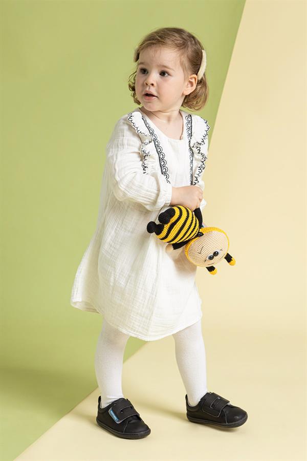 Το καινοτόμο σύστημα κλεισίματος με μία ενιαία αυτοκόλλητη ταινία (Velcro) επιτρέπει στο παιδί να φορέσει και να αφαιρέσει εύκολα το παπούτσι μόνο του. Το εξωτερικό τμήμα καλύπτει πλήρως το Velcro, προστατεύοντας από τη φθορά και διατηρώντας την καθαριότητα και την αισθητική του παπουτσιού.