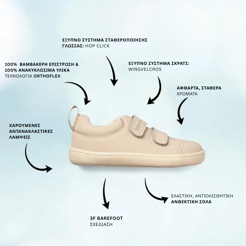 Smart Velcro System: Διπλό σκρατς (Velcro) κούμπωμα ειδικά σχεδιασμένο για εύκολο άνοιγμα, τέλεια εφαρμογή και άνεση ακόμα και σε πιο στρουμπουλά ποδαράκια.
