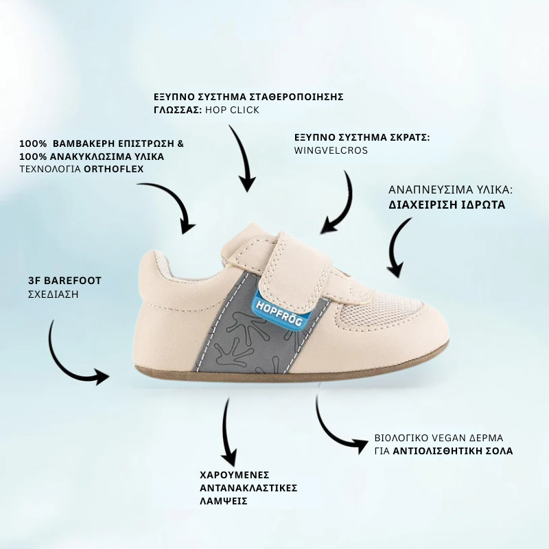 Smart WingVelcros: Ειδικό σκρατς (Velcro) σύστημα σχεδιασμένο για εύκολο άνοιγμα/κλείσιμο ακόμη και από τα πιο μικρά χεράκια, χωρίς να πιέζει τα ποδαράκια.